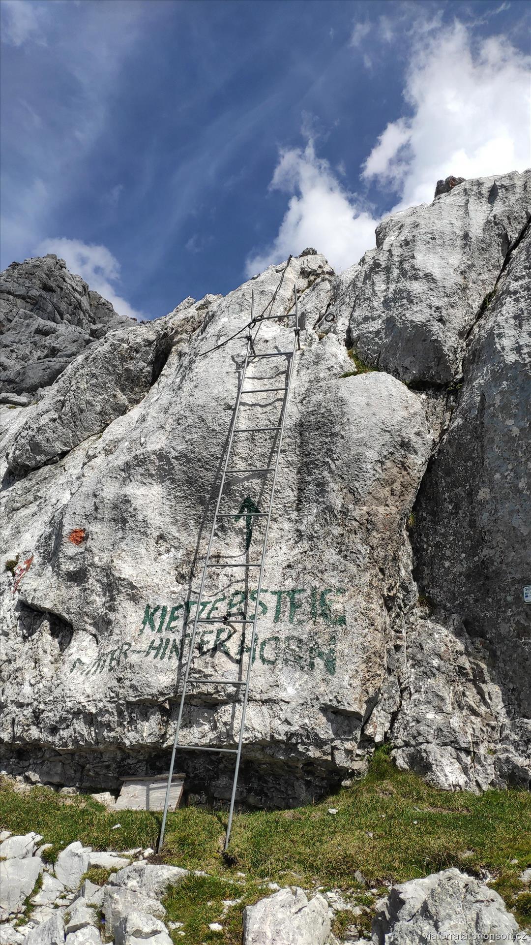 Stoupáme údolím po značené cestě Nurracher Höhenweg. Stoupáme údolím, výše pak pod svahy vpravo. Nakonec šikmo vlevo a zpočátku sutí, pak v serpentinách svahen vzhůru. Na křižovatce ve výšce cca 1900 m se držíme vlevo Nurracher Höhenweg.Ve výšce 2310 m přicházíme k počátku klettersteigu.